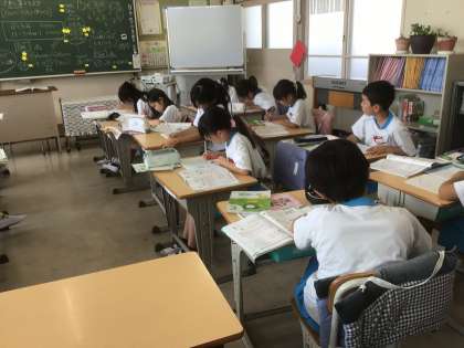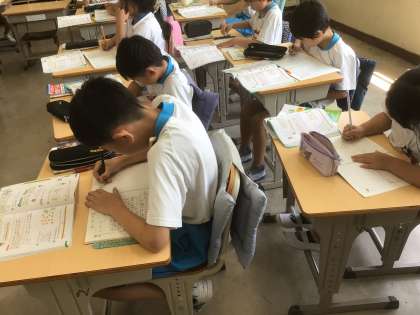 「あまりのあるわり算」の学習です。答えの出し方や、あまりの数の大小など、数の関係をみんなで考えました。