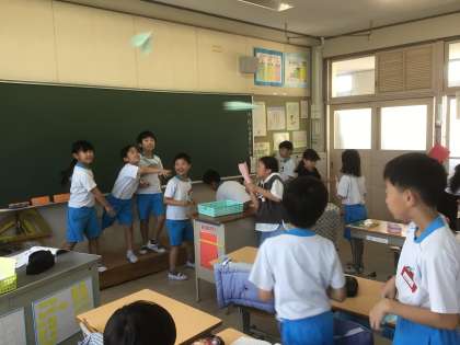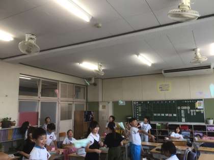 「詩を読もう」の学習で、「紙ひこうき」を読みました。作者の思いを共に感じることができたら、とみんなで紙ひこうきをを折り、飛ばしてみました。