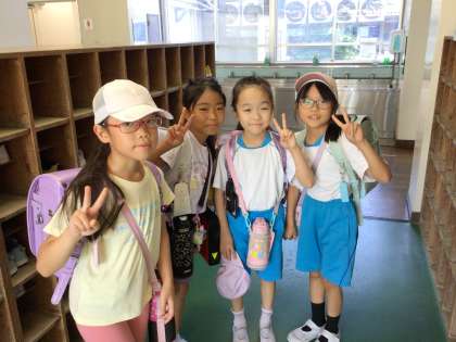 今朝の様子です。今日も暑さに負けず元気に登校しています。