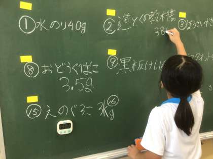 自分ではかったものを、みんなに伝えました。いろいろな物を、はかっていますね。