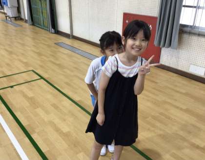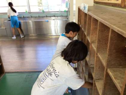 時間に余裕のある時は、他の靴箱も綺麗にしています。体育館の掃除は、終わりの挨拶をするところです。