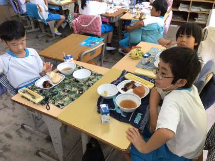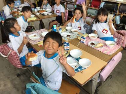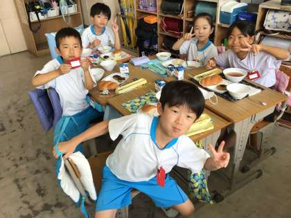 この日のメニューは、ツイストパン、オニオンスープ、ハンバーグ、ツナサラダ、牛乳でした。どのメニューも好評で残りませんでした。