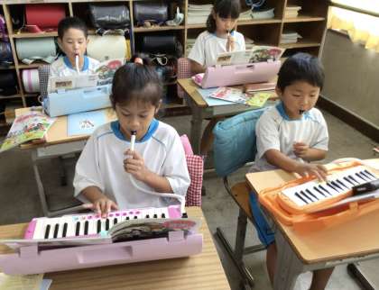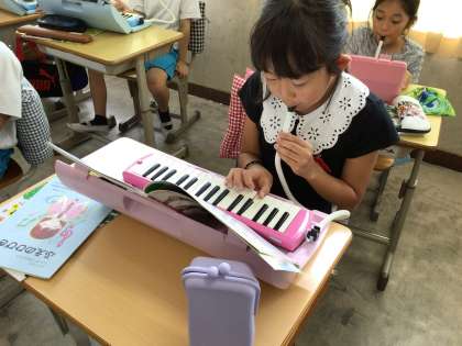 海風きってを鍵盤ハーモニカで練習しました。一つ一つの音に気を付けながら、ゆっくり演奏していました。