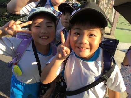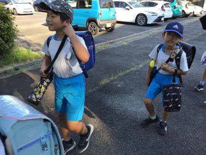 北門から帰っていく3年生です。友だちと仲良く歩いています。