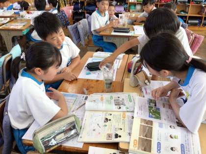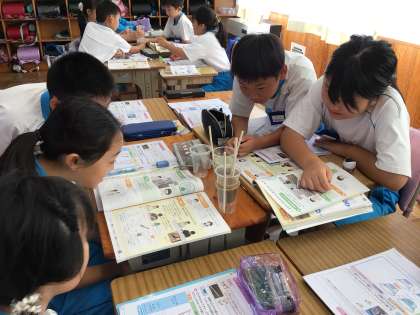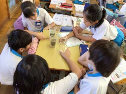土の粒の大きさと水のしみ込み方の関係を知るための実験をしました。