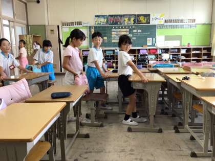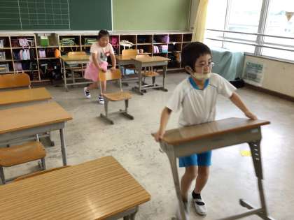 教室と3年多目的室です。床も雑巾で綺麗にしています。