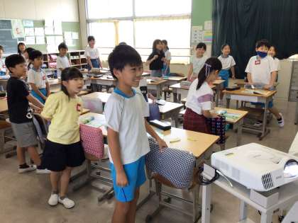 好きな色を英語で表現しています。虹のうたを英語で歌っているところです。