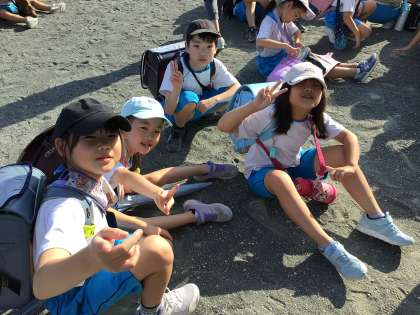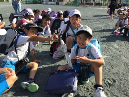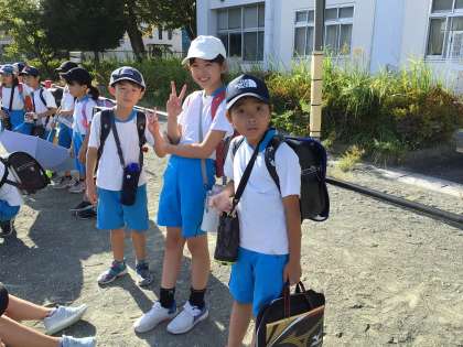 4組、学級委員の様子です。学級委員は、きれいに整列できるように声掛けをしています。