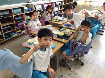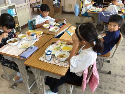 金曜日のメニューは、麦ごはん、パンプキンポタージュ、チキンサラダ、きんぴらピラフの具、牛乳でした。1番人気はパンプキンポタージュでした。