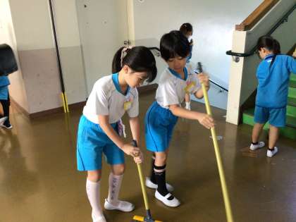 毎朝、一生懸命に綺麗にしています。2年生も笑顔で過ごしています。