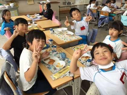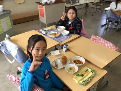 4組の様子です。友だちと楽しく食べています。