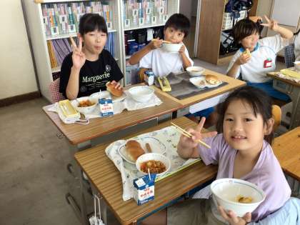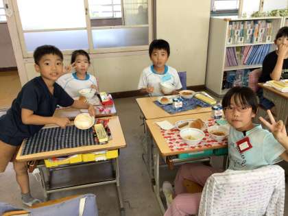 1組の様子です。友だちと会話を楽しみながら食べています。