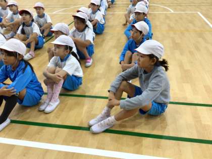今日の1時間目は、2組・3組が体育館で、パラアスリートさんの授業を行受けています。