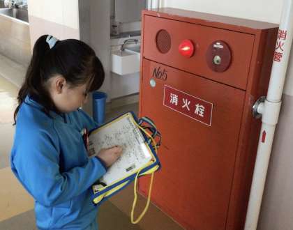学校内で消防に関わるものを探してまわりました。