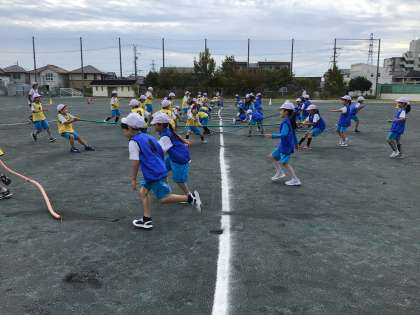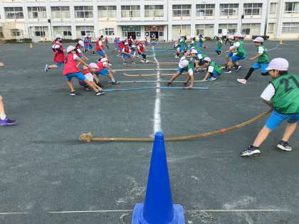 綱取りの練習を行いました。15本の綱を1本でも多く引っ張ってきたクラスが勝ちとなります。