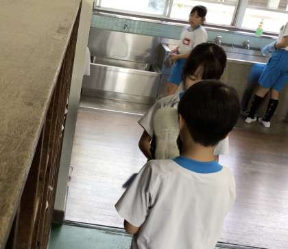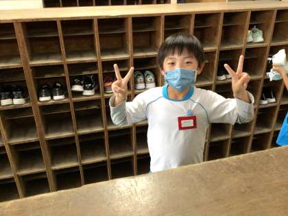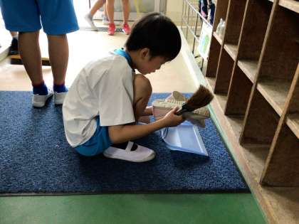 昇降口の様子です。毎日たくさんの砂や埃が溜まっているのを綺麗にしています。