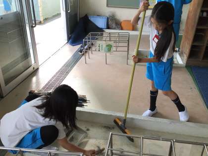昇降口の様子です。綺麗にする場所を自分で見つけて掃除しています。