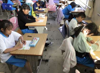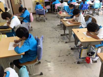 今日は、新出漢字のテストを行いました。最近は、100点満点の3年生が増えています。