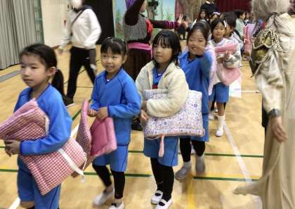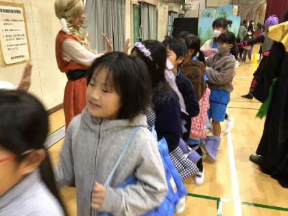 体育館を出る時に劇団員の方々と挨拶を交わしていました。