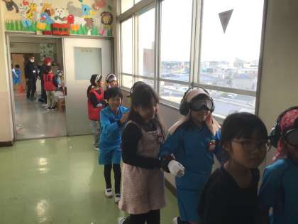 高齢者疑似体験では、高齢者と介助者の役割を、交代して体験しました。体験したことで、身をもって大変さや必要なことが分かりました。