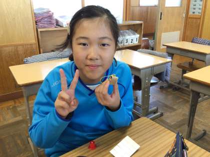 クラブ最終日。今日は、紙バンド(エコテープ/クラフトバンド)を使って、ランドセルのキーホルダーを作りました。とても小さな部品をボンドで貼り合わせ、色とりどりで個性的な、思い出に残るキーホルダーができました。