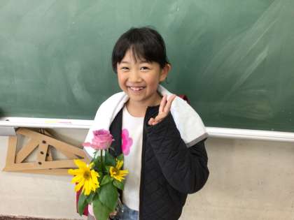 教室にヒマワリとバラを持ってきてくれました。教室を綺麗に彩っていました。