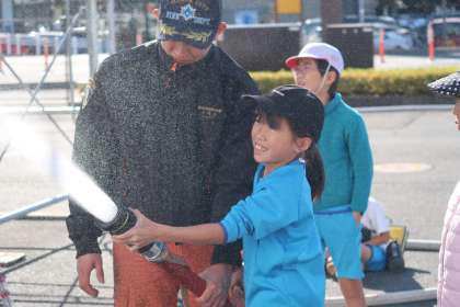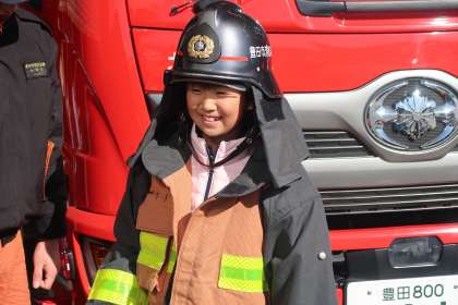 北消防署に見学に行きました。放水の体験をしました。また、消防隊員の服を着たり、消防車に乗ったりしました。救急車の中も見学しました。