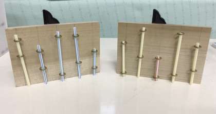 高さの違うヒートンに長さの異なるストローを通す