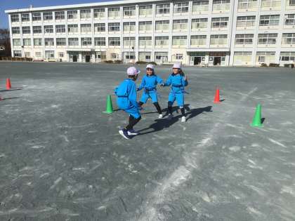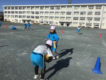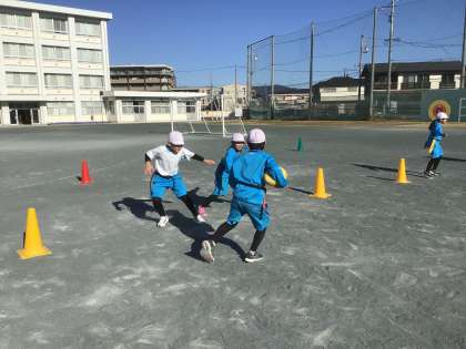 「タグラグビー」の学習です。タグを取る方も取られる方も、必死に頑張っています。