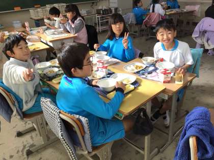 この日のメニューは、ごはん、とうふのちゅうかに、ぎょうざ、バンサンスー、牛乳でした。ぎょうざが1番人気でした。