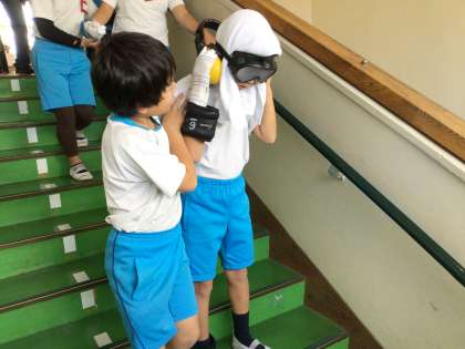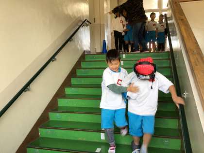 2人で協力して階段の登り降りをしています。