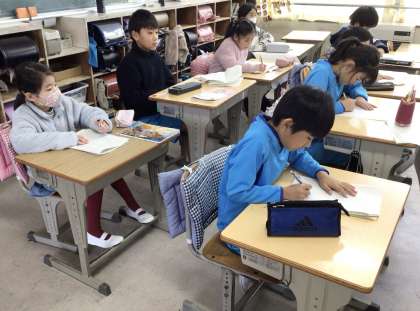 1組の様子です。モチモチの木の主人公豆太の気持ちを考えています。