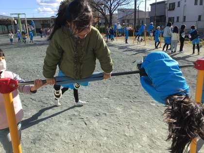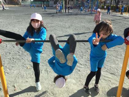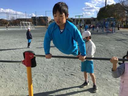 今日は、テレビの撮影がありました。3年生は鉄棒で遊んでいる様子が撮影されました。