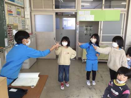 今回はスペシャルということで、たくさんの遊びをしました。赤、青、黄班に分かれてそれぞれで輪投げやボウリング、みんなで手をつないでくぐり抜けました。最後は、みんなで王様ジャンケンをしました。大きな声で声援を送って雰囲気を盛り上げました。