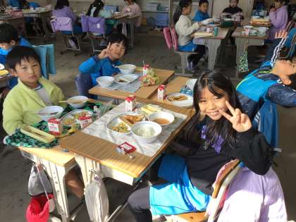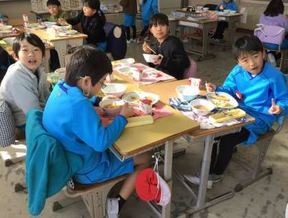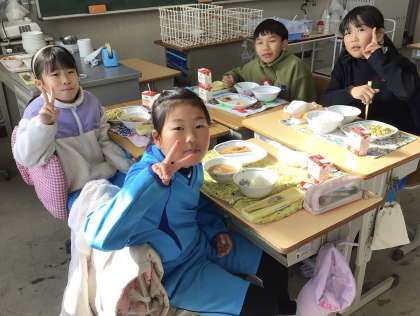 この日のメニューは、ごはん、かしわ汁、にぎすフライ、和風サラダ、牛乳でした。和風サラダが1番人気でした。