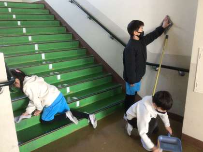 ろうかや階段、壁の掃除まで、友だちと分担をして頑張っていました。とてもステキですね。