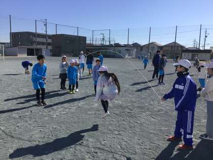 体育委員会の企画で、体育委員が縄を回してくれました。2年生も張り切ってとんでいます!