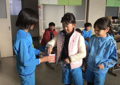 今朝、V.S委員がお年玉募金の呼びかけに来ました。3年生も募金に協力しています。