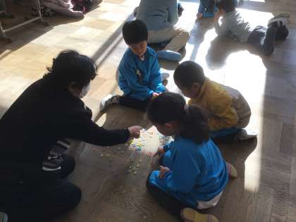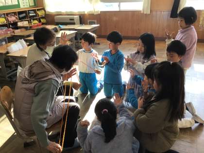 生活の時間に地域の昔遊びの名人をお招きして、昔遊びを楽しむ会をしました。
