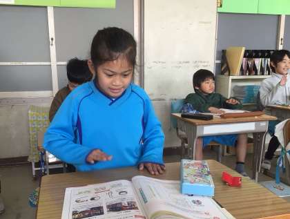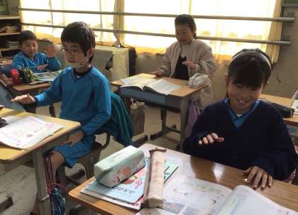 今日は、リズムを取る練習をしていました。手で机を叩きながらリズムの感触を確かめていました。