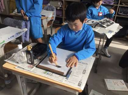 1組の様子です。一文字一文字ゆっくり丁寧にかいています。