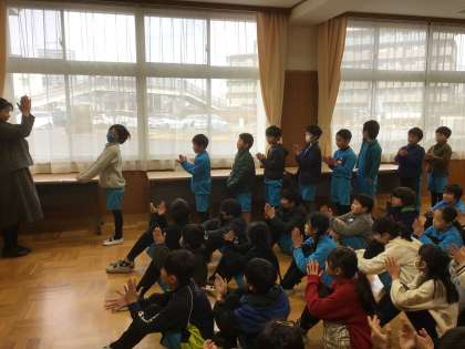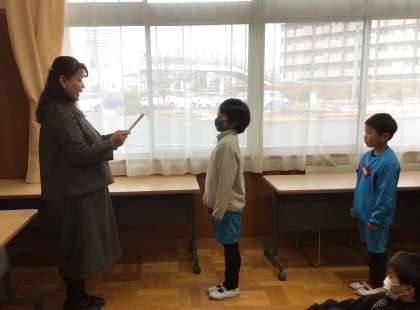 長縄ギネス大会において3年生の中で1番多く跳んだチームが表彰されました。大きな拍手の中、認定証をいただきました。