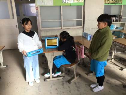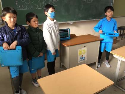 学びフェスタに向けて班ごとに分かれて発表練習をしています。