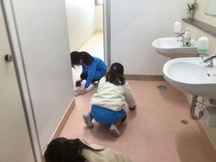 3年生のトイレ掃除です。担当になった子が、ピッカピカにみがきあげてくれています。