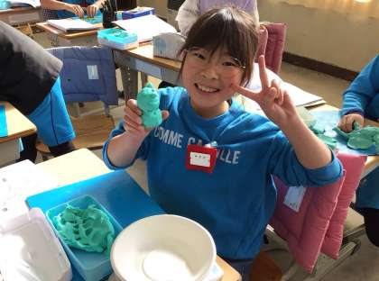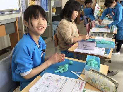 物の形を変えたときの重さを計りました。粘土を使って実験しました。