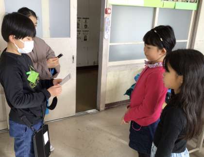 ゴミの分別の取り組みがよかったので、エコ委員の5年生から表彰してもらいました。