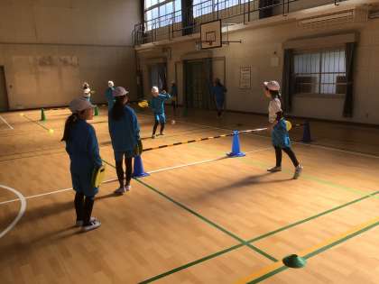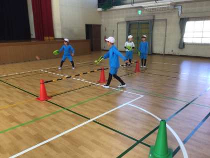 「テニピン」に挑戦しました。まだまだ試合には慣れませんが、必死にボールを追いました。