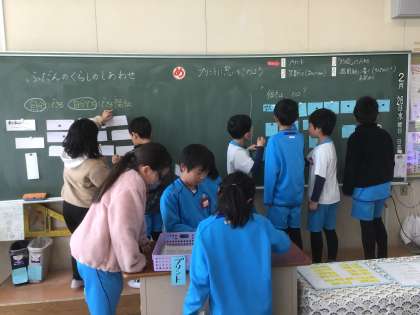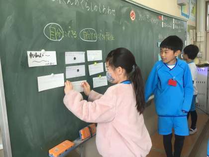 「ふだんのくらしのしあわせ」の学習において、みんなの思いを伝え合いました。自分にできる福祉が今後の生活にいかせていけたらいいなと願うばかりです。