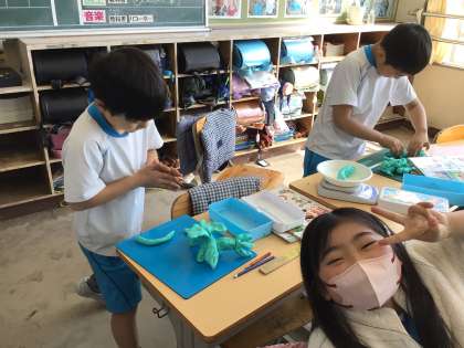 ものの重さのの学習です。粘土を使って物の形が変わったときの重さを調べました。