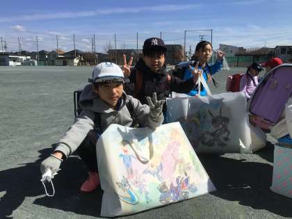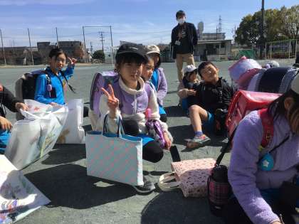 先週の様子です。図工の作品をバッグに入れて持ち帰りました。